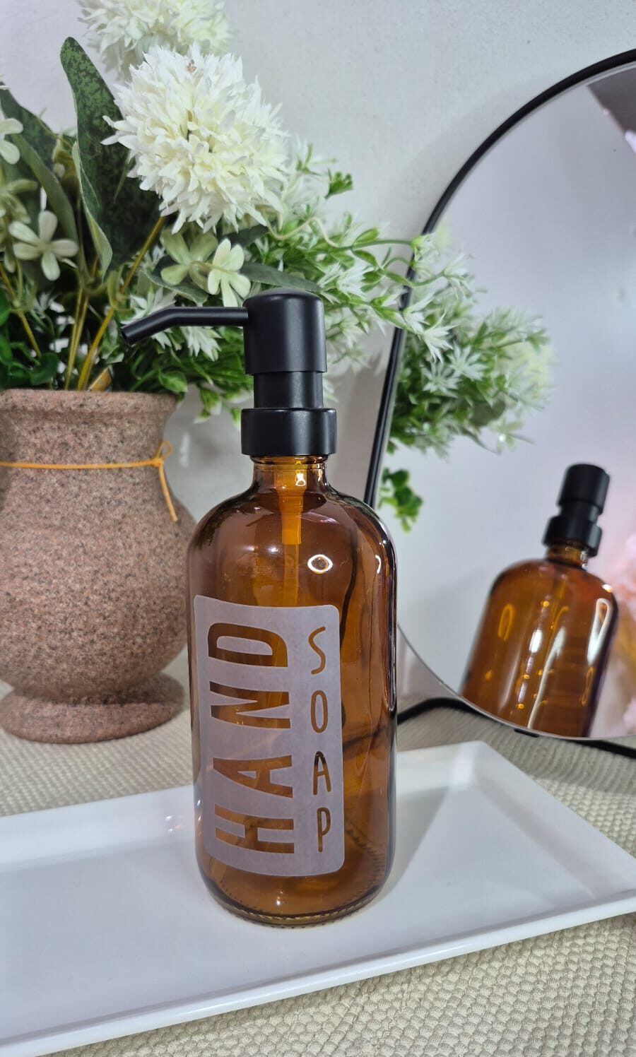 Dispenser de Vidrio con lineas y Tapa de oro rosa