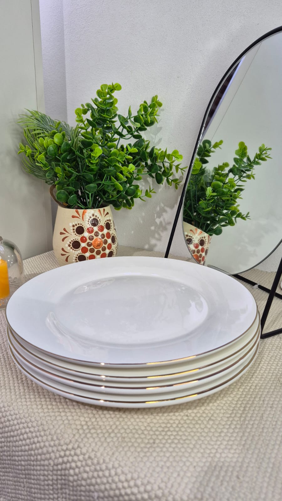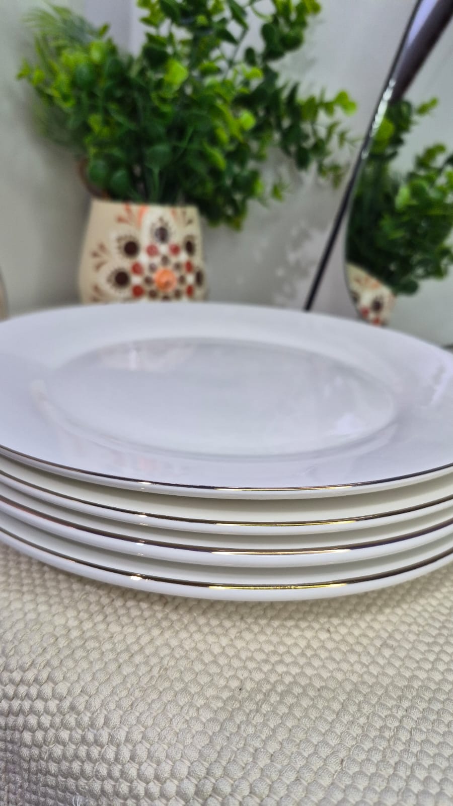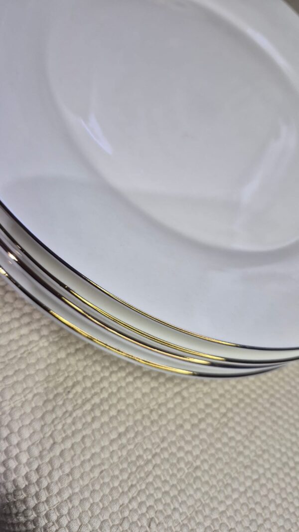 Plato de ceramica blancos con bordes dorados