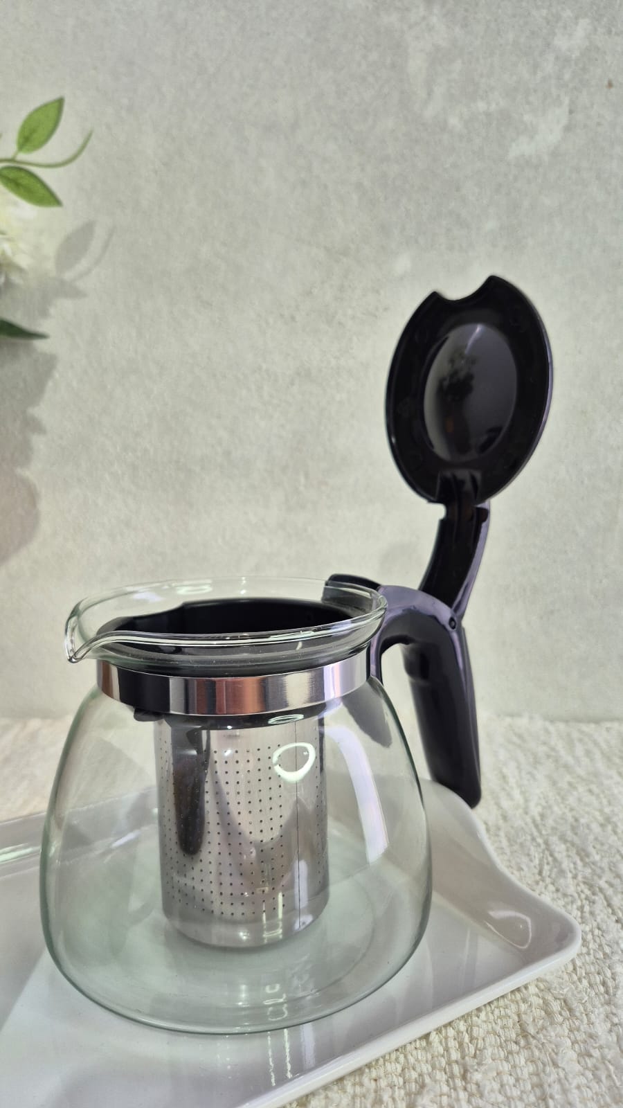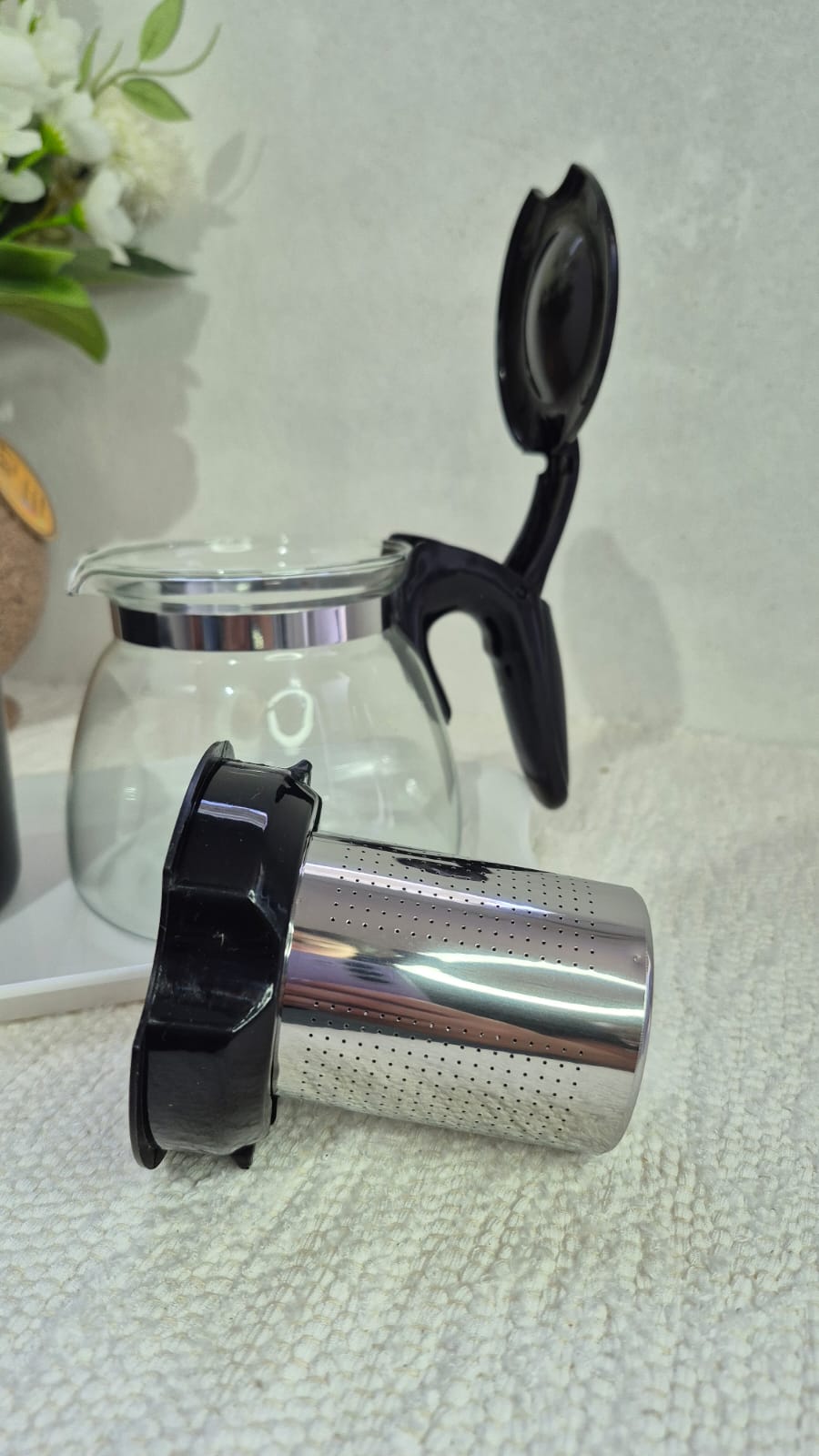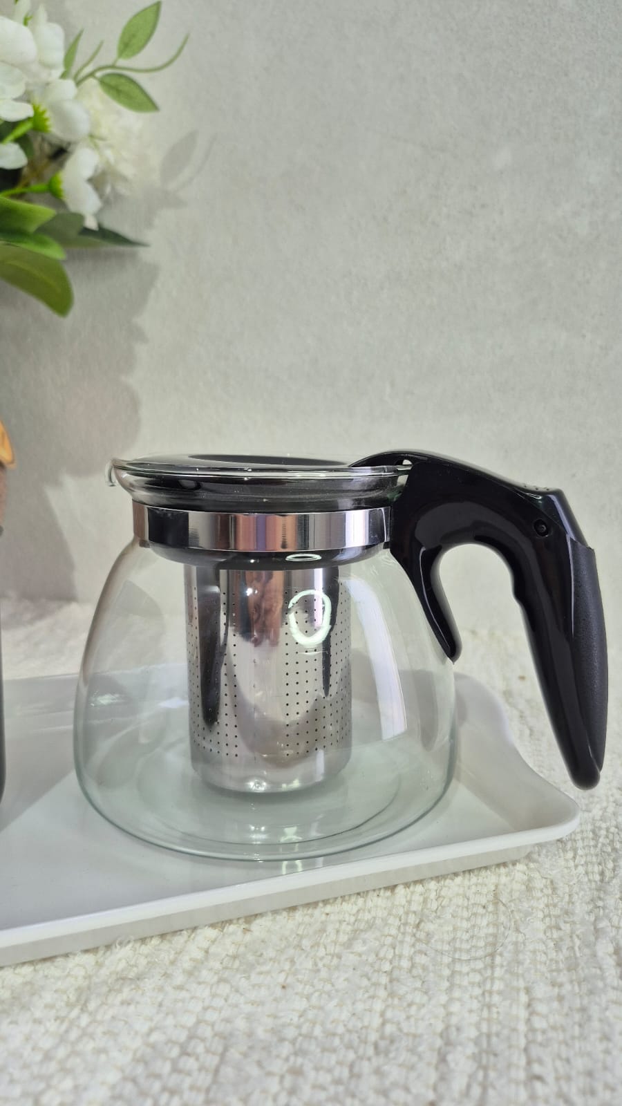Tetera de Vidrio-Filtro de acero inoxidable-tapa y manija de plastico