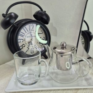 Tetera de Vidrio-Filtro de acero inoxidable-tapa y manija de plastico